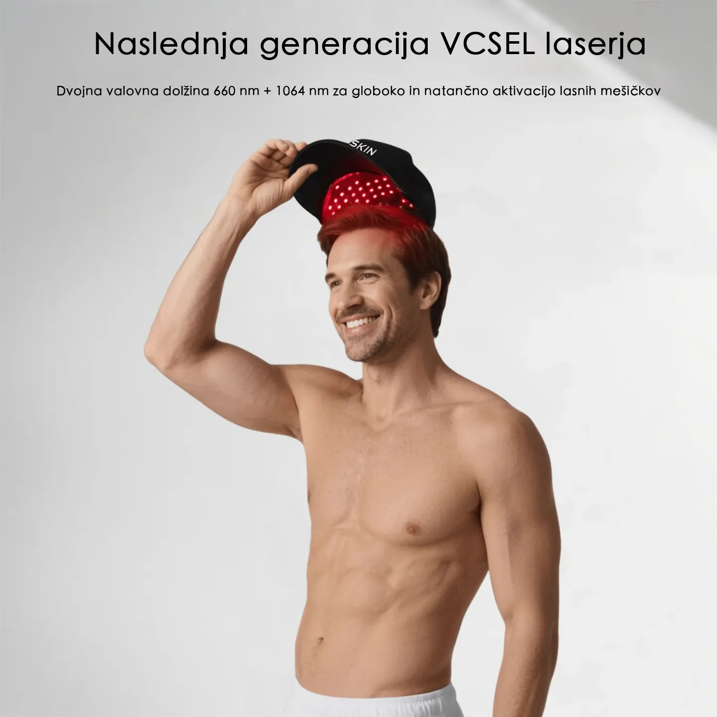 VCSEL laserji (660nm + 1064nm) dovajajo koncentrirano energijo globoko v lasišče, da ponovno aktivirajo dormantne mešičke in sprožijo novo rast las pri koreninah.
